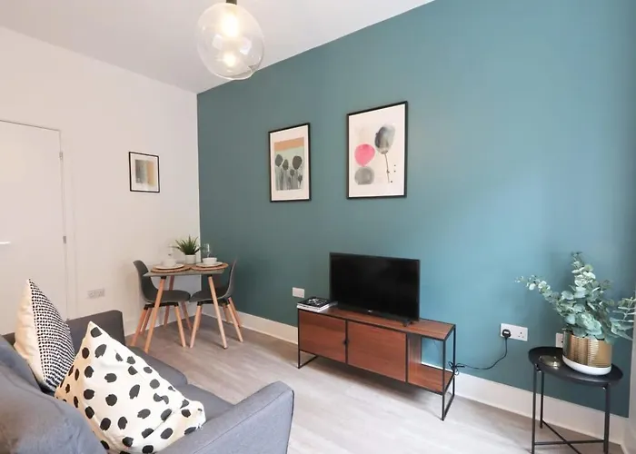 Eine komplette Küche mit einem Wasserkocher, einem Kühlschrank und Küchenutensilien steht für Selbstversorgung zur Verfügung. Die Gäste dieses Apartments können den Komfort von Ausstattung zur Kaffee- & Teezubereitung genießen. Gerichte der italienischen Küche werden im Restaurant Prezzo serviert, das sich in 5 Gehminuten Entfernung von diesem Apartment befindet. Die Bushaltestelle Anchor Road liegt nur wenige Schritte entfernt von diesem 45 m^2 großen Apartment.